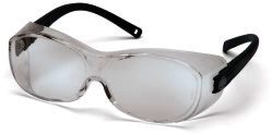 Designed to better fit over prescription eyewear. The single lens design ecapsulates the eye for superb protection. Lightweight nylon temples adjust for secure, comfortable fit. Lenses are coated for superior scratch resistance.