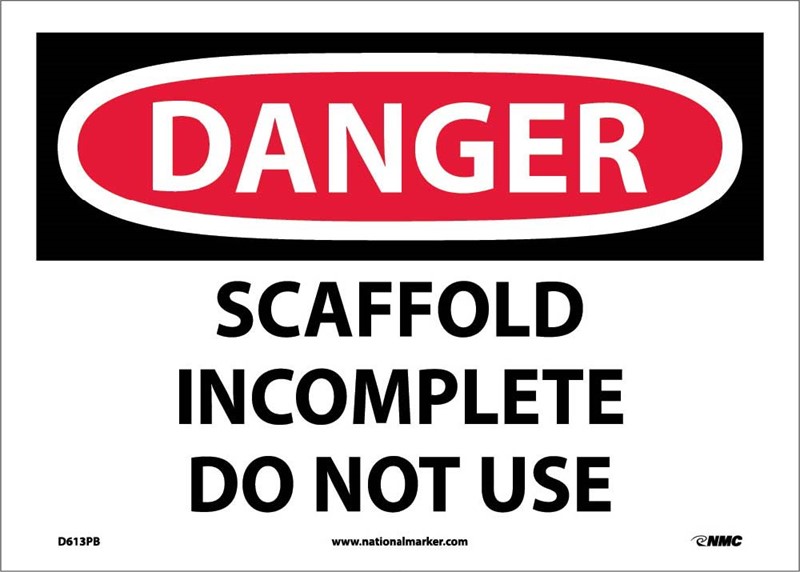 Partially constructed equipment is dangerous and should not be used. Avoid confusion and prevent injury by labeling scaffolds that are incomplete with our can't-miss sign.