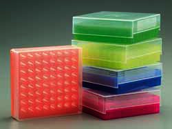 A durable, stackable alternative to cardboard”in natural or assorted colors. Bold printed alphanumeric matrix for quick sample identification. Autoclavable. 5-1/4 x 5-1/4 x 1-3/4ť. Five per pack.