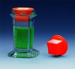 Safely grips five slides from one end for easy handling and transferring. This gripper allows the user to immerse slides in groups of five, and is designed to be used with any Coplin jar with an ID of 26mm square. Supplied in cases of two.