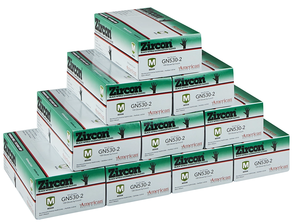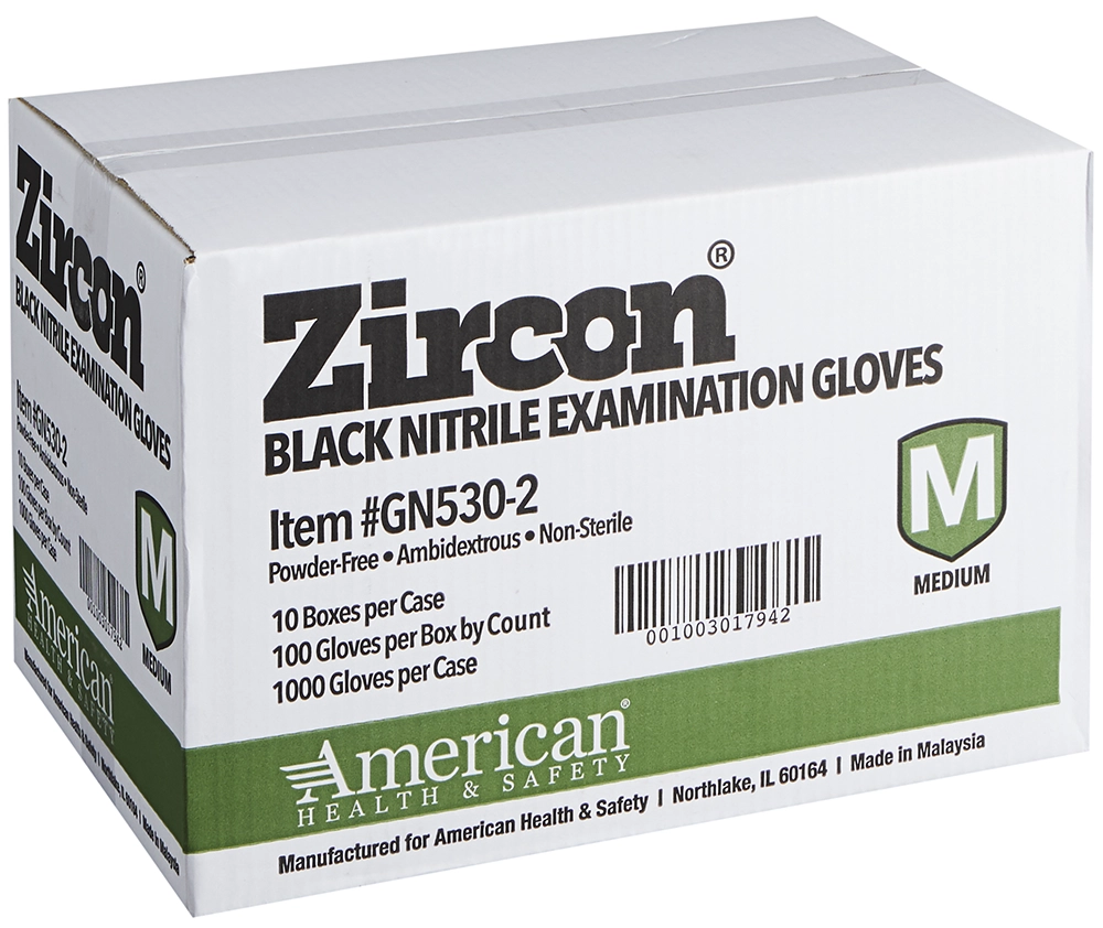 Zircon™ Black Disposable Nitrile Exam Gloves, 5 mil, 1,000/Case