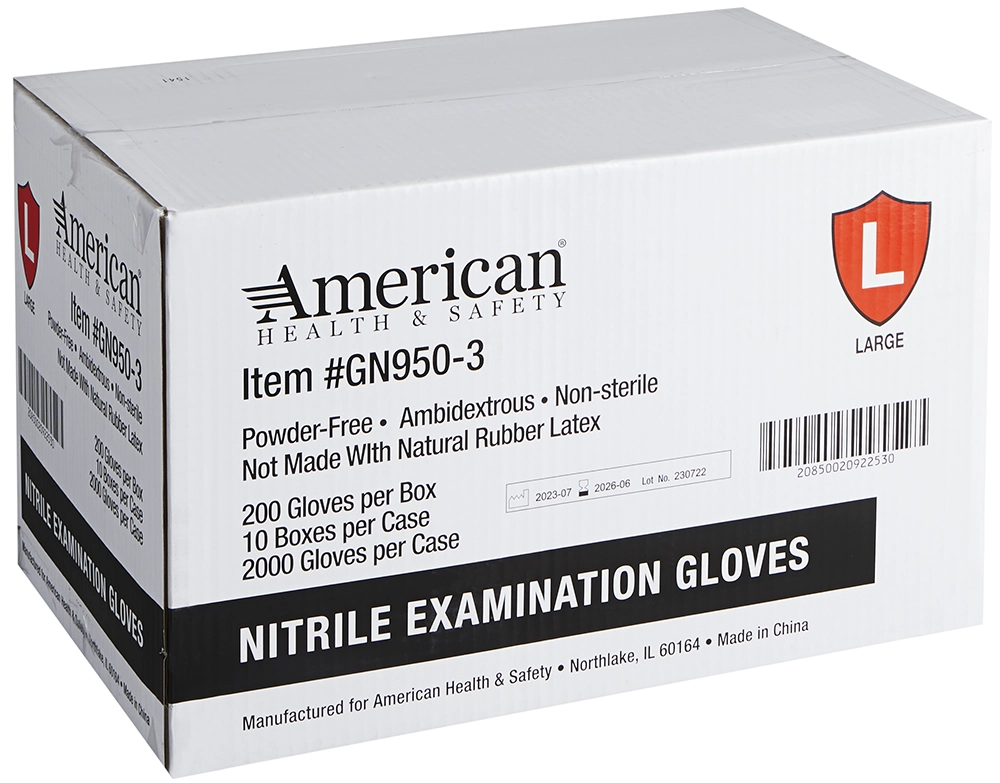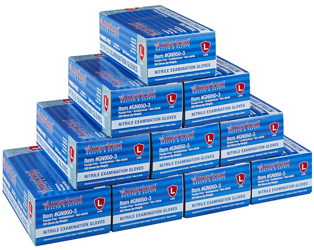 Our American Health & Safety Nitrile Exam Gloves are manufactured with exceptional fit, feel and comfort. Whether you're in a laboratory setting, food manufacturing, or working in healthcare, these gloves are specifically designed to provide unparalleled quality and comfort. Conveniently packaged in a space saving 2,000 gloves per case takes less storage space.