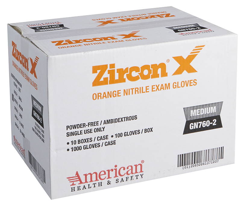 Zircon X Powder-Free Orange Nitrile Exam Gloves, 5.5 mil, 1000/Case
