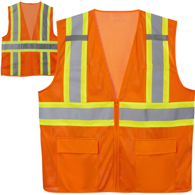 American Health & SafetyŽ VMO221 Class 2 Hi-Vis Orange Mesh Reflective Safety Vest, Two-Tone Striping