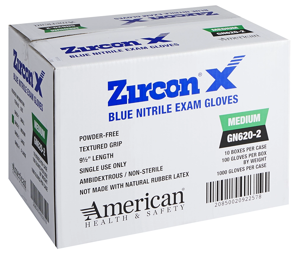 Zircon X™ Disposable Nitrile Exam Gloves, 6 mil, Blue, 1000/Case
