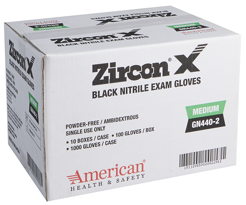 Zircon X Black Nitrile Exam Gloves, 6 mil, Powder Free, 1000/Case