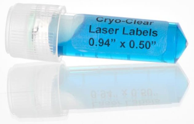 Our patented Cryo-Clear Laser Labels withstand conventional and cryogenic storage conditions (vapor and liquid phase nitrogen storage at -196 °C). The labels are chemically inert with a solvent resistant acrylic adhesive that will adhere to all plastics, glass and metal. Cryo-Clear Laser Labels will withstand dry heat up to 70 °C without cracking, peeling or degrading.