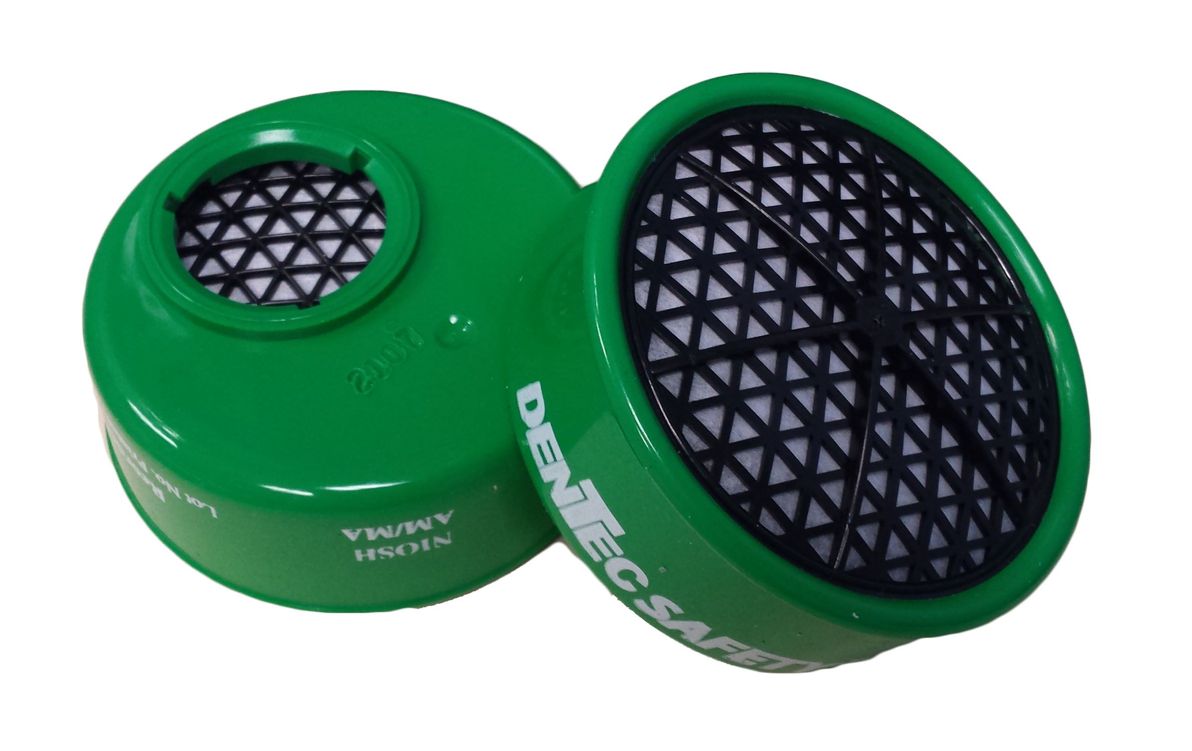 Unique "Saf-Twist" design quickly attaches to any Dentec Safety half-mask or full-face air-purifying respirator Facepiece. The offset connector improves visibility and allows face shields or welding helmets to be worn without interference.