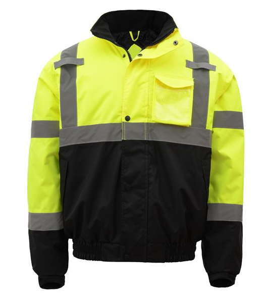 GSS® 8001 Class 3 Hi-Vis Lime/Black Waterproof Quilt-Lined Bomber Jacket