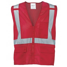 • Color – Red with 2” Silver Reflective Striping in a Suspender Pattern Over Top of Shoulders as Well as 360˚ Continuous Reflective Band Encircling the Torso