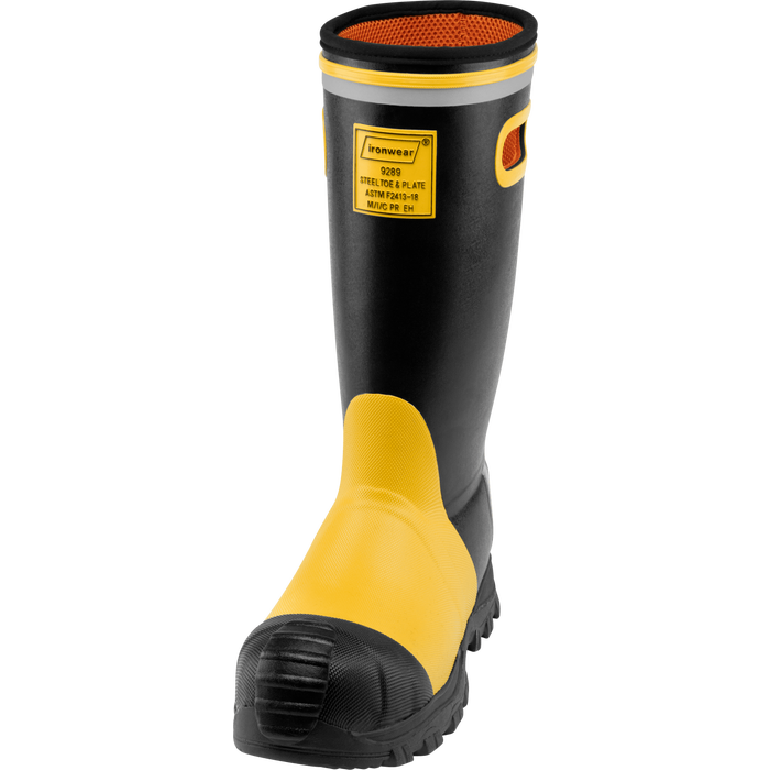 Ironwear® 18" Waterproof Steel Toe Rubber Boots, Yellow/Black, Easy On-Off