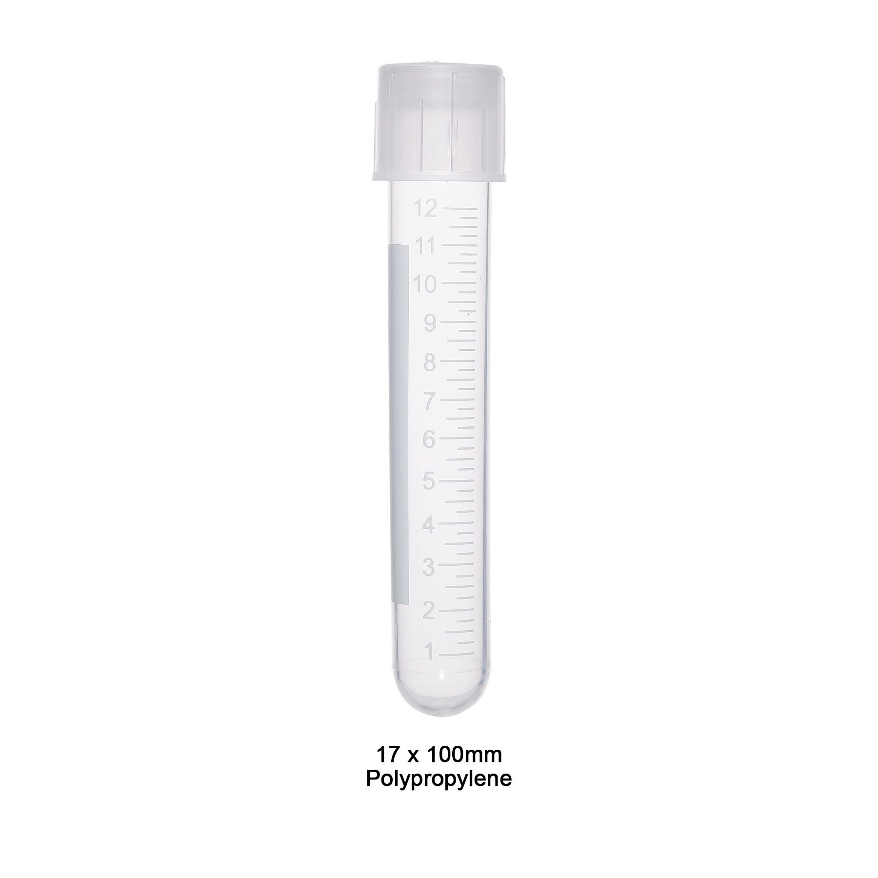 Our Prohelix 14 mL Culture tubes include low density polyethylene snap caps that can be attached in two positions. Tubes are available in either crystal clear polystyrene material or polypropylene material. The police styrene tubes Withstand temperatures from 0°C to 70°C, while the transparent polypropylene tubes withstand temperatures from -86°C to 121°C. Polystyrene tubes may be centrifuged up to 2000xG while Polypropylene tubes withstand higher centrifugal forces up to 4000xG. All tubes and caps come sterilized to SAL10-6. And our RNase, DNase, pyrogen and cytotoxin free.