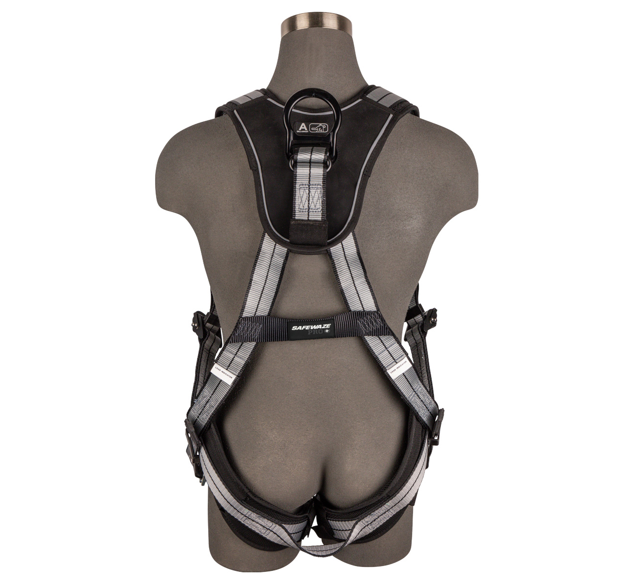 SafewazeŽ Pro+ Slate Lightweight Full Body Harness with Aluminum Front D-Ring, Quick-Connect Chest Buckles, Tongue Buckle Legs