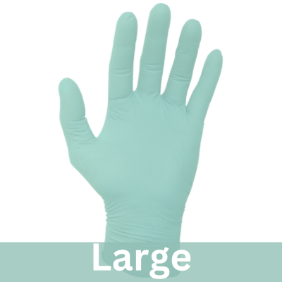 - Their bright mint green color emphasizes the eco-friendly benefits of these exam gloves