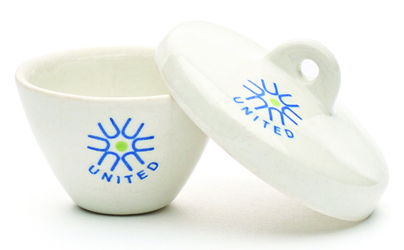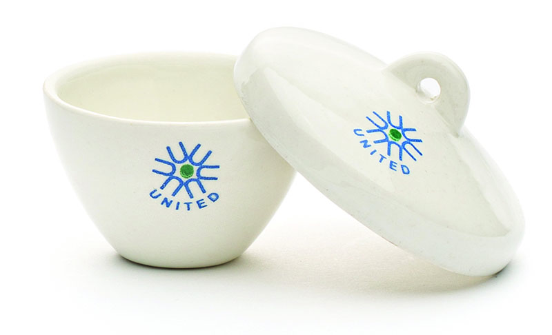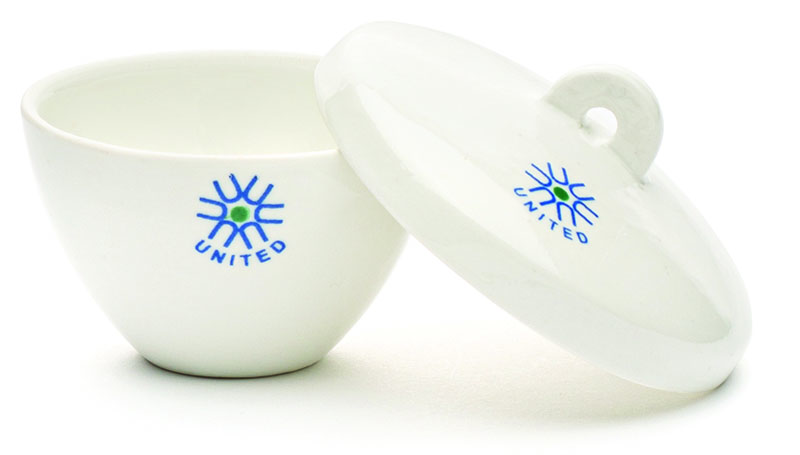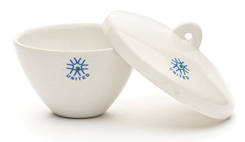 United Scientific wide form porcelain crucibles feature and inner and outer surface glaze with the exception of the outside bottom and rim.  Withstands continuous operating temperature of 1150°C.  To prevent thermal stress cracks, it is strongly recommended that the heating/cooling rate not exceed 200°C per hour.  The porcelain crucibles offer excellent resistance to acids and alkalies (Except for hydrofluoric acid).  Click on individual items below for individual specifications.