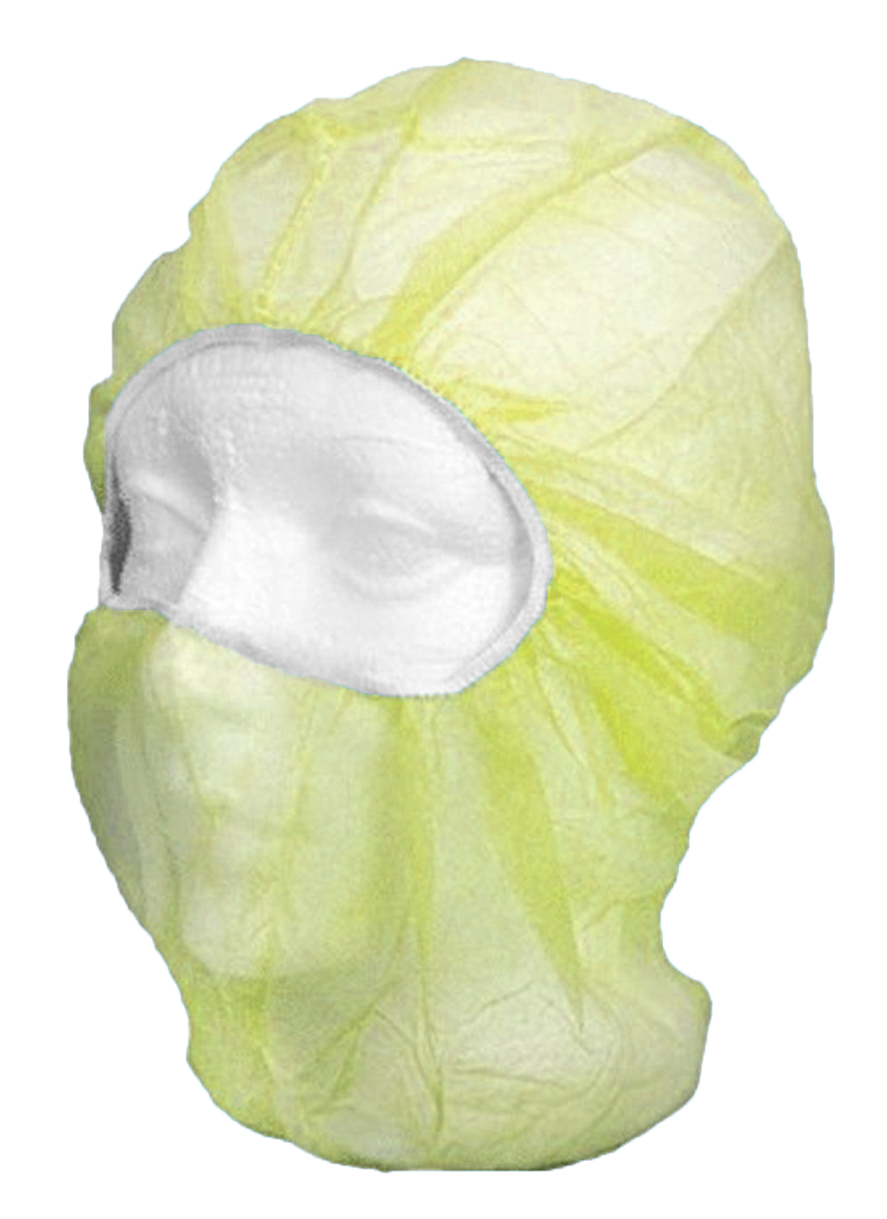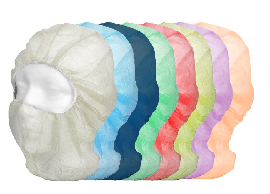 Polypropylene disposable bouffant and beard hoods product surroundings from hair or head contamination.